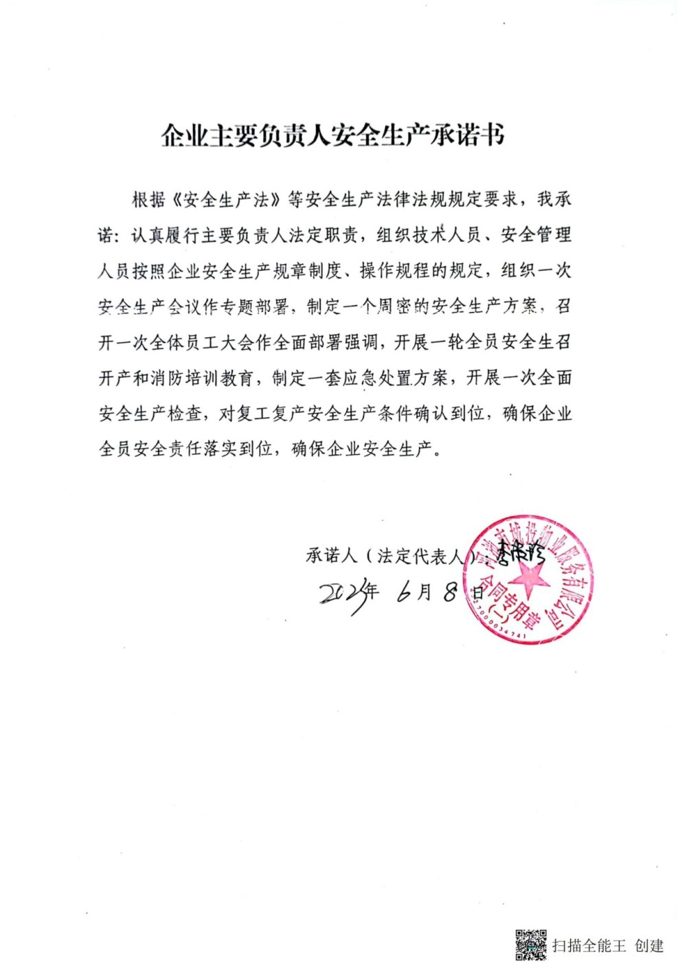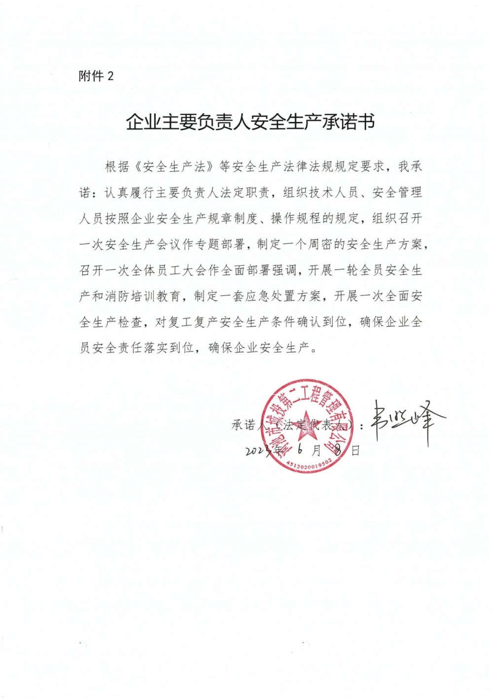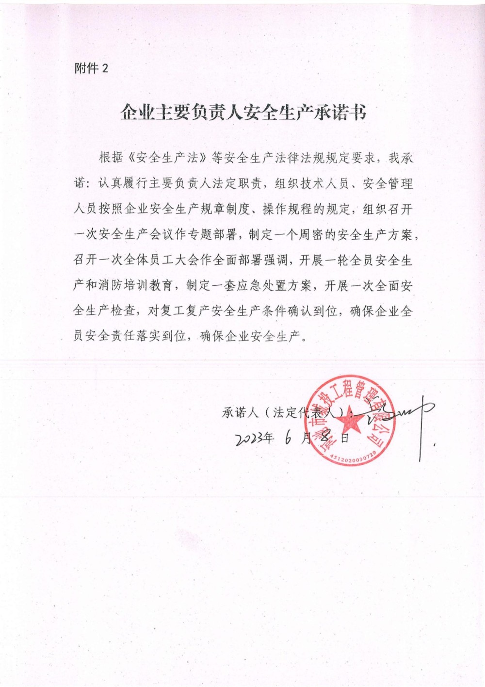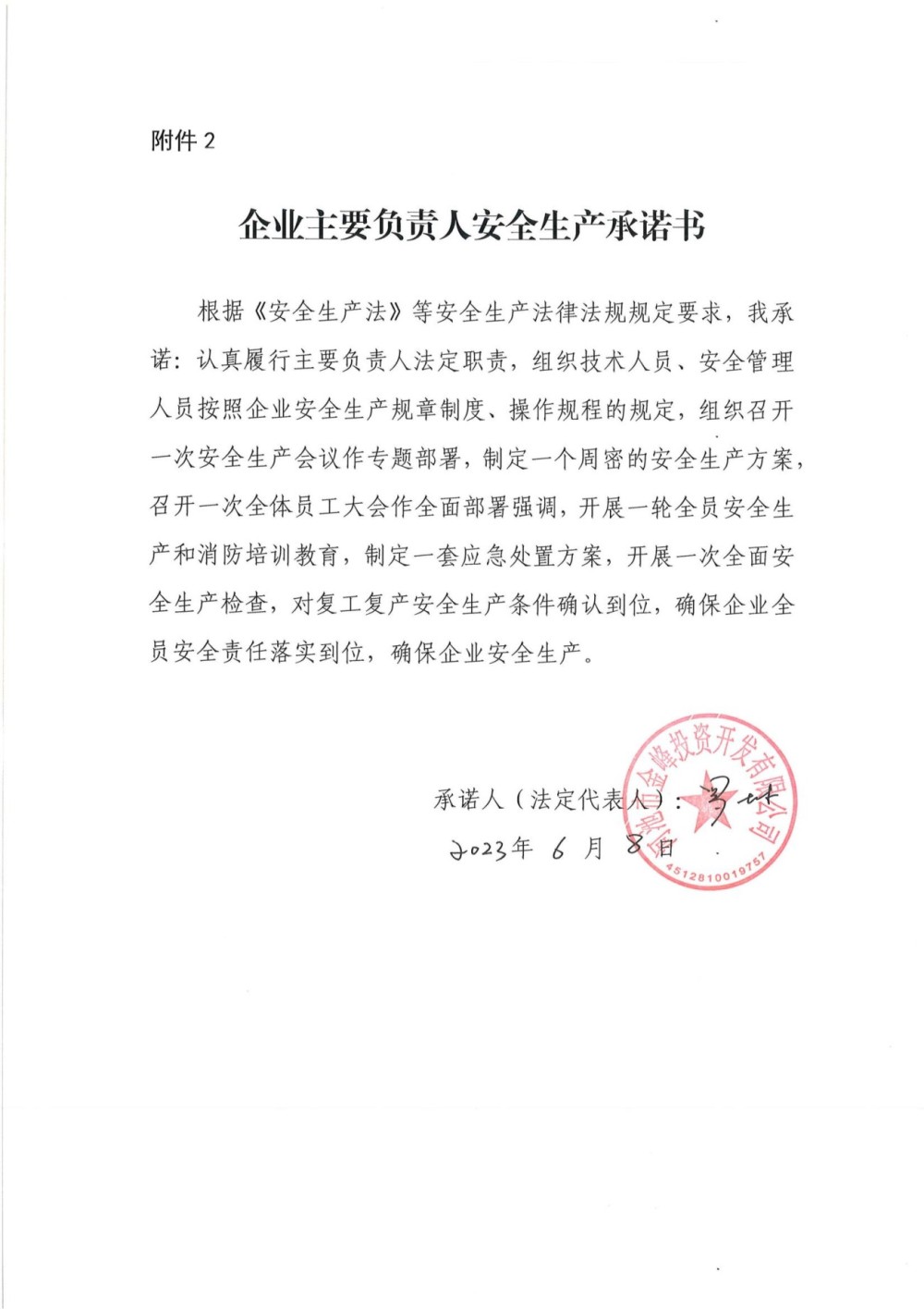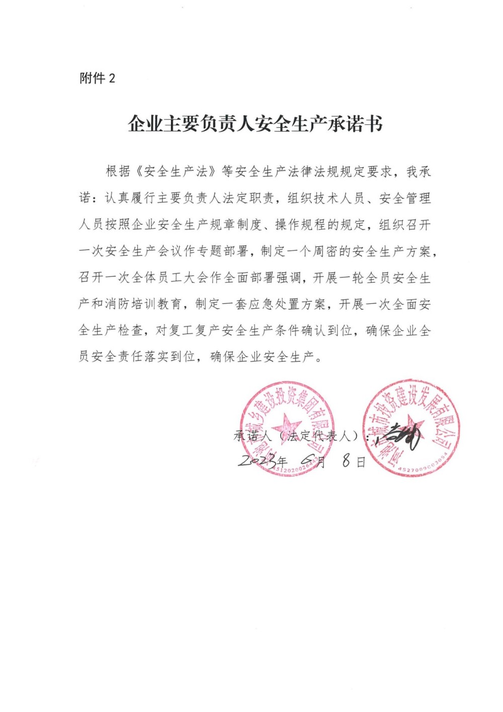 集团公司及各子公司2023年安全生产承诺书