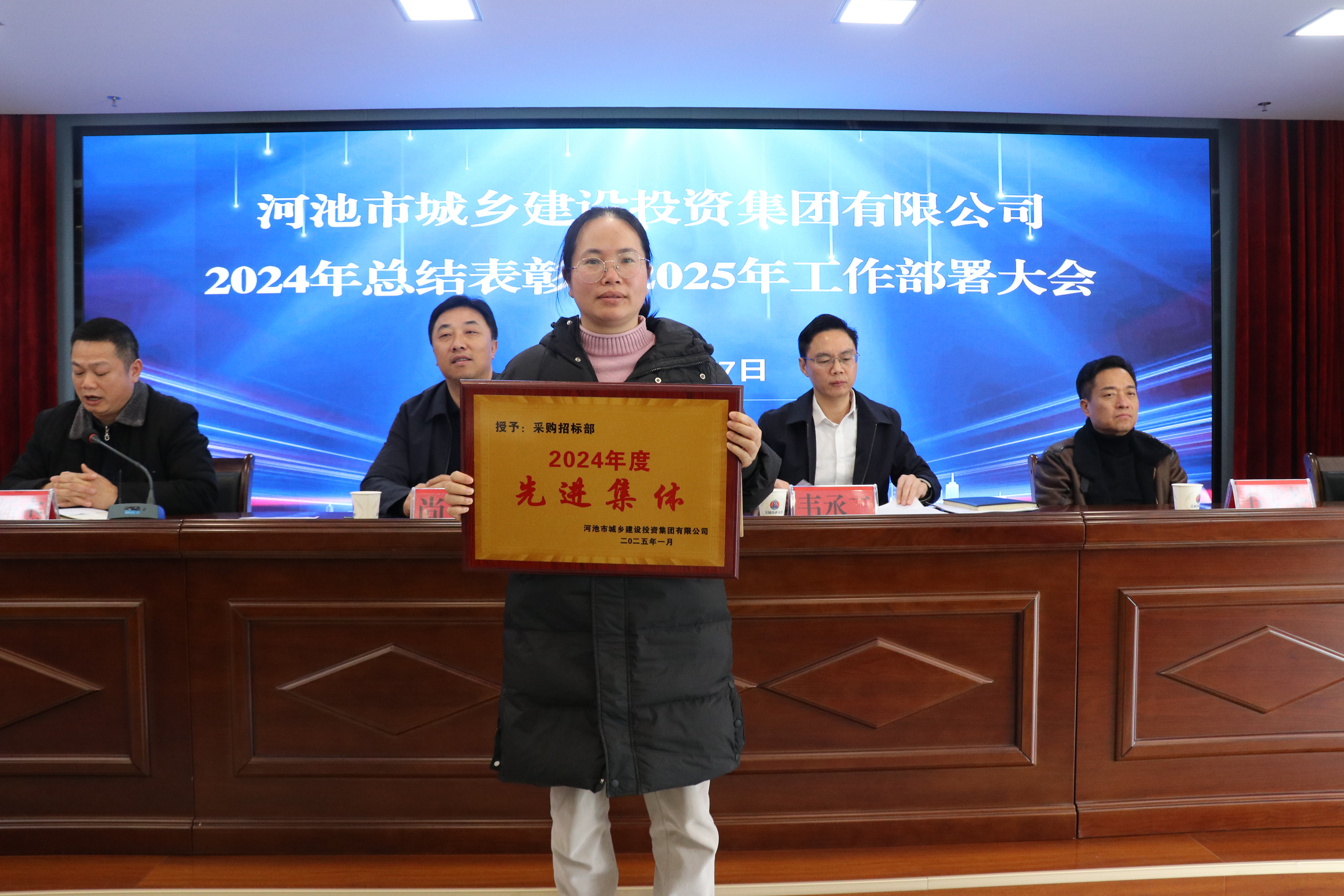 2025年1月17日上午,河池市城投集团在金城江办公区召开2024年总结表彰暨2025年工作部署大会。会议全面回顾总结2024年以来的各项工作,表彰先进,凝聚奋进力量,谋划部署2025年工作蓝图。会议由集团公司党委副书记、工会主席李新杰主持,集团公司领导班子成员及全体干部职工参加。